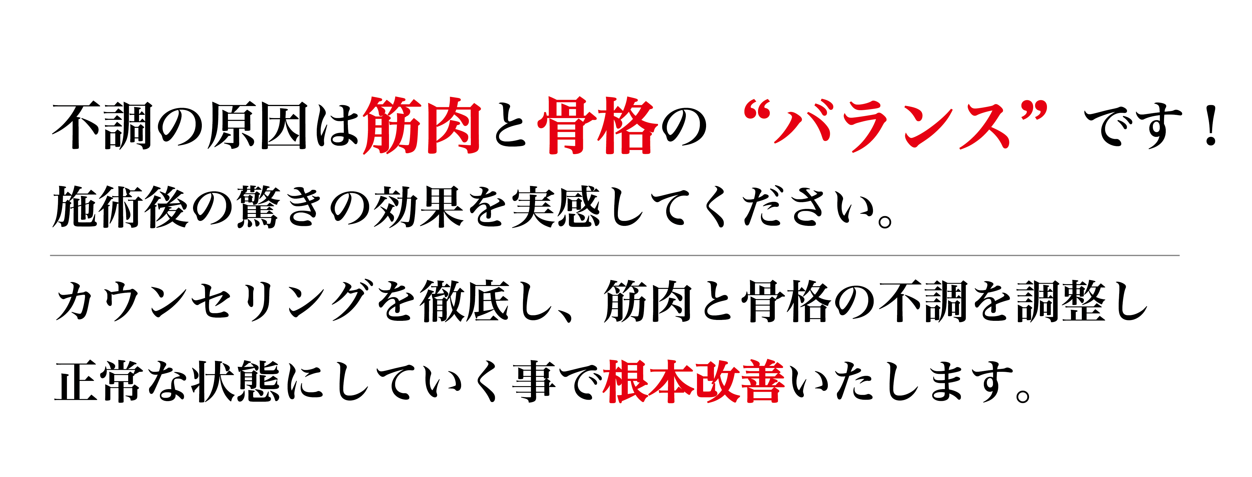 お体のさまざまな不調を根本から改善するための施術をお客様に合わせて行います。